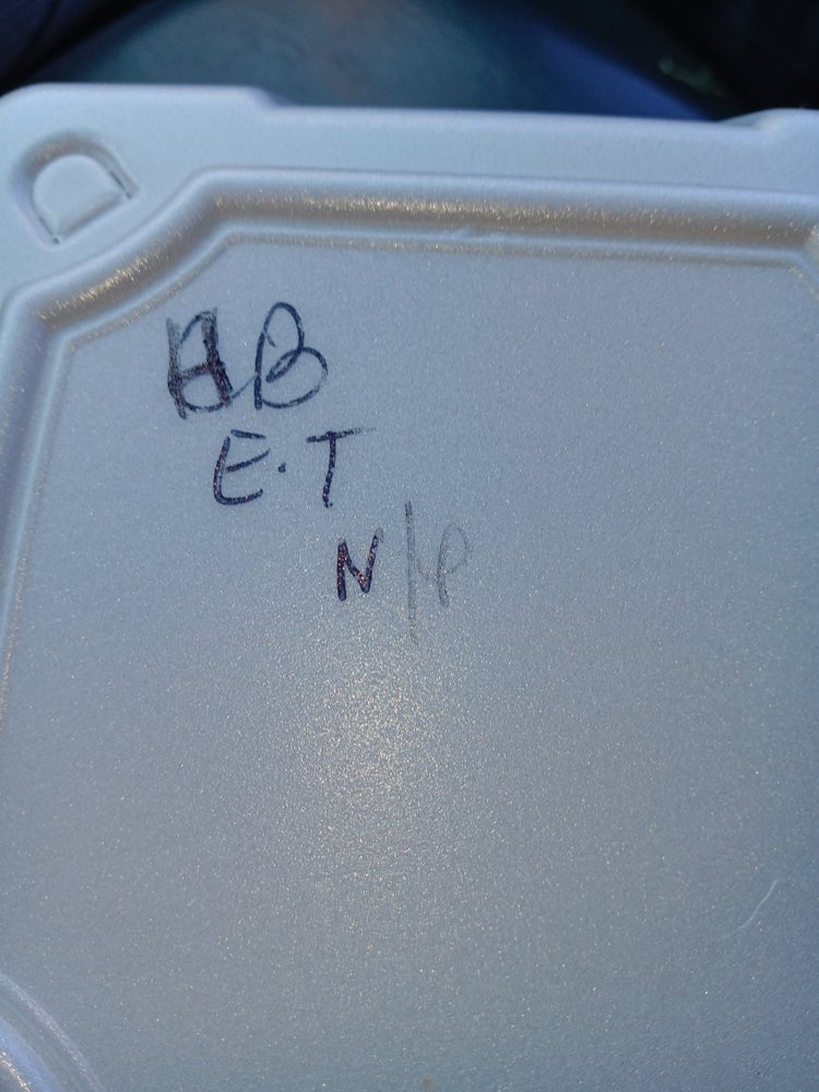 Slaw or mayo, lettuce, onion, tomato, and pickles.